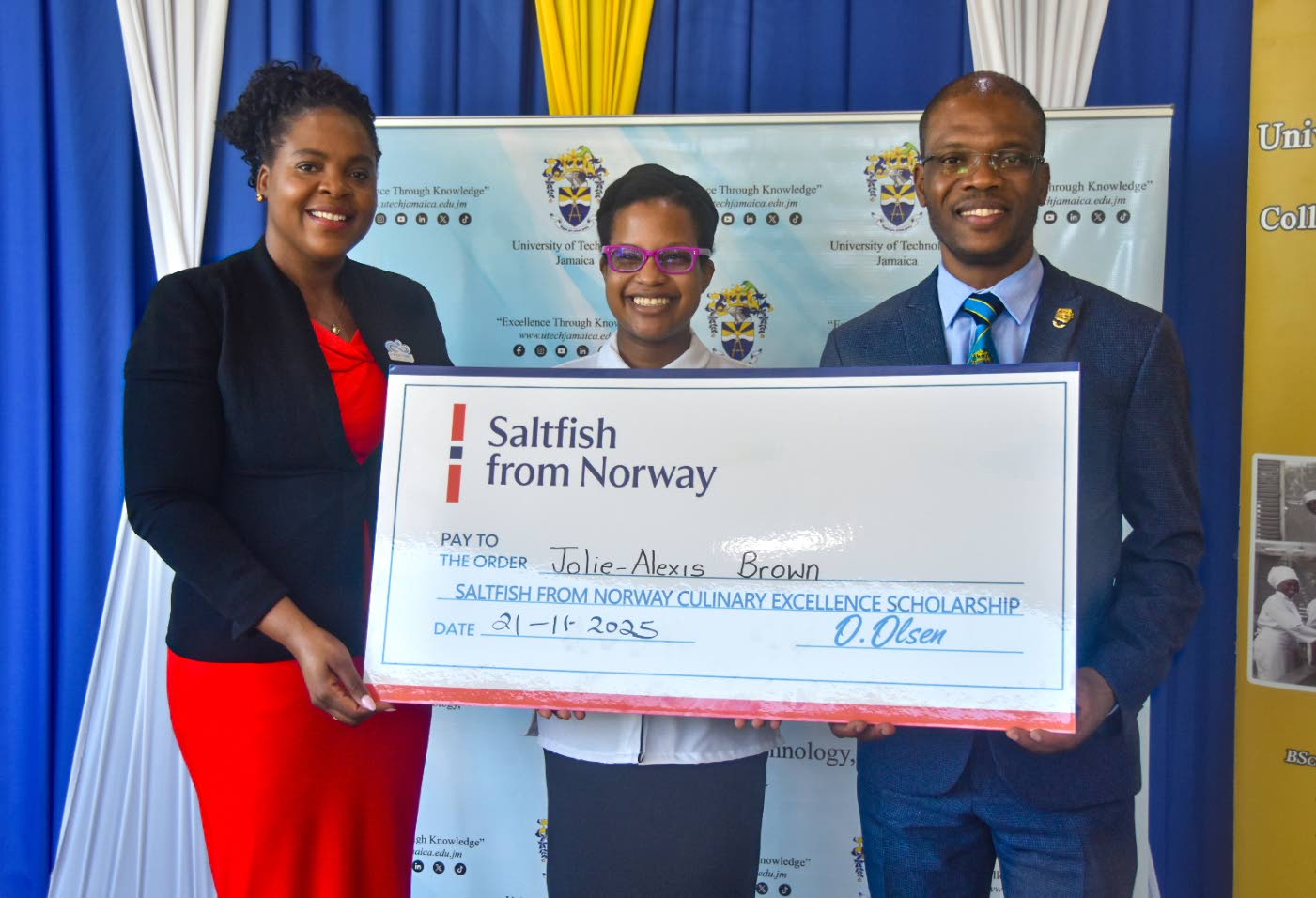 Jolie-Alexis Brown, a 21-year-old student at the University of Technology, Jamaica (UTECH) School of Hospitality and Tourism Management, has become the first recipient of the Saltfish from Norway Culinary Excellence Scholarship.