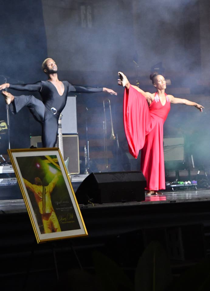 Tribute in dance to Jimmy Cliff during his official funeral service at the National Indoor Sports Centre yesterday. (Photo: Naphtali Junior)