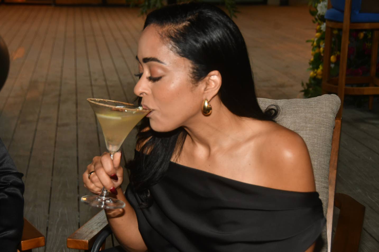 Jamaica Observer Table Talk Food Awards judge Mala Morrison enjoys her Zaatar Breeze Martini. (Photo: Garfield Robinson)