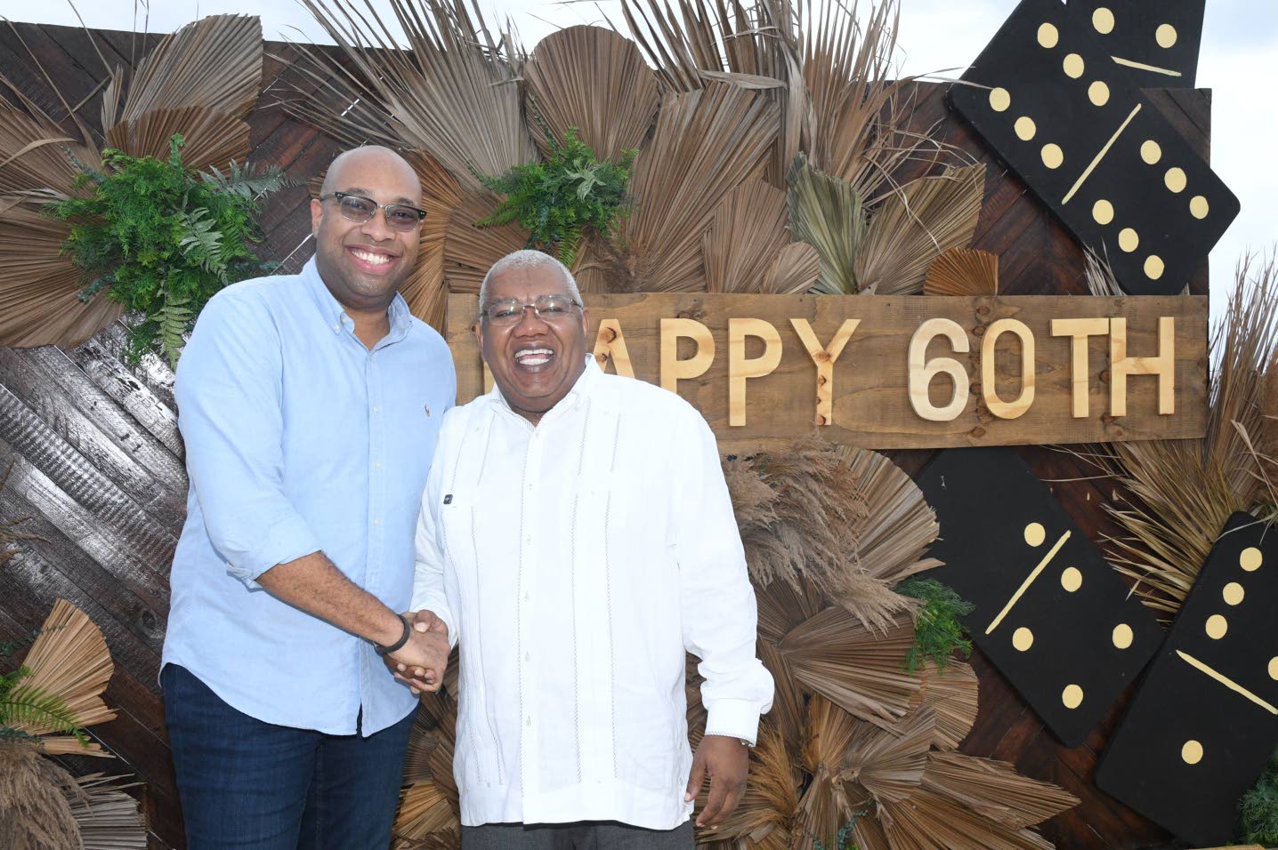 State minister in the Ministry of Industry, Investment and Commerce Delano Seiveright (left) and birthday celebrant Gary Sadler Joseph Wellington