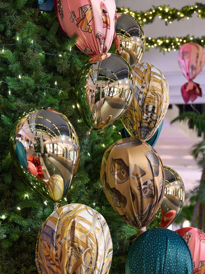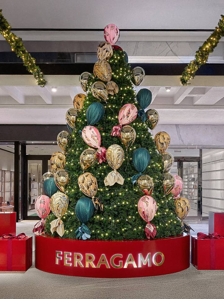 Festive, but make it Ferragamo! If you have been holiday shopping at Bal Harbour Shops in Miami you would have noticed the fashionable holiday tree, now up in the Center Courtyard, presented this year by the Italian house of Ferragamo. The Ferragamo Boutique — located at 9700 Collins Ave, Bal Harbour, Florida — unveiled a holiday installation which features silk scarves floating as balloon ornaments and the tree becomes a canvas for colour, craft, and a little wonder. We can’t think of a better way to get into the holiday spirit.
