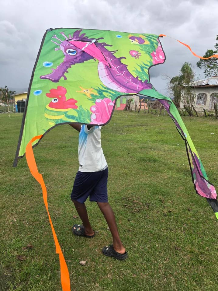 A young boy runs off clutching his new kite, a gift he received during the Joy Drive distribution organised to bring holiday cheer to children in western Jamaica.