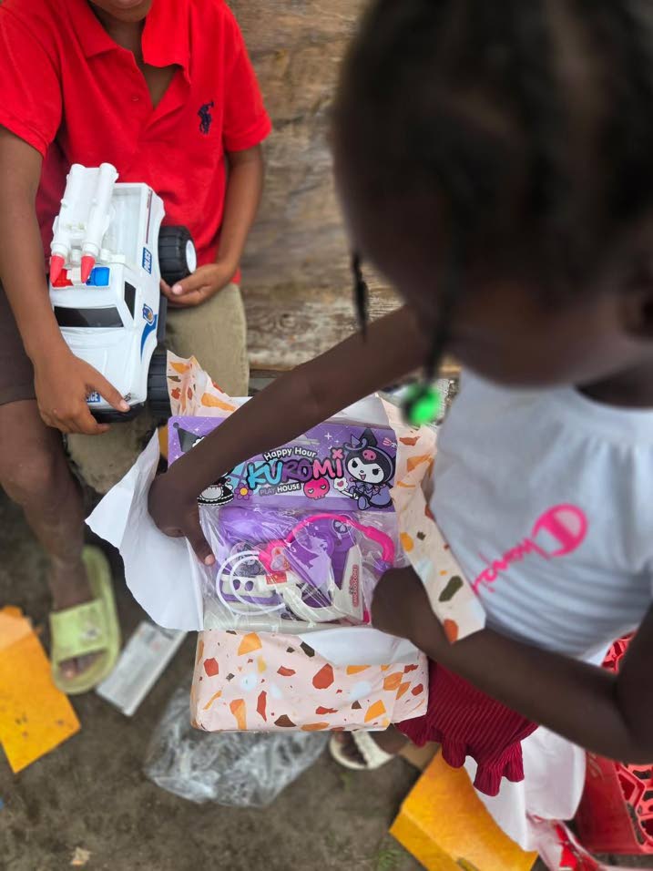 In the days leading up to Christmas, volunteers wrapped gifts destined for children in St Elizabeth and Westmoreland, carefully sorting toys, handwritten cards, and treats. By December 23, teams were on the road, spending time in Holland Village and Slipe, with additional gifts distributed to other adopted communities through trusted local channels, ensuring that by Christmas Day the children had already received their presents.