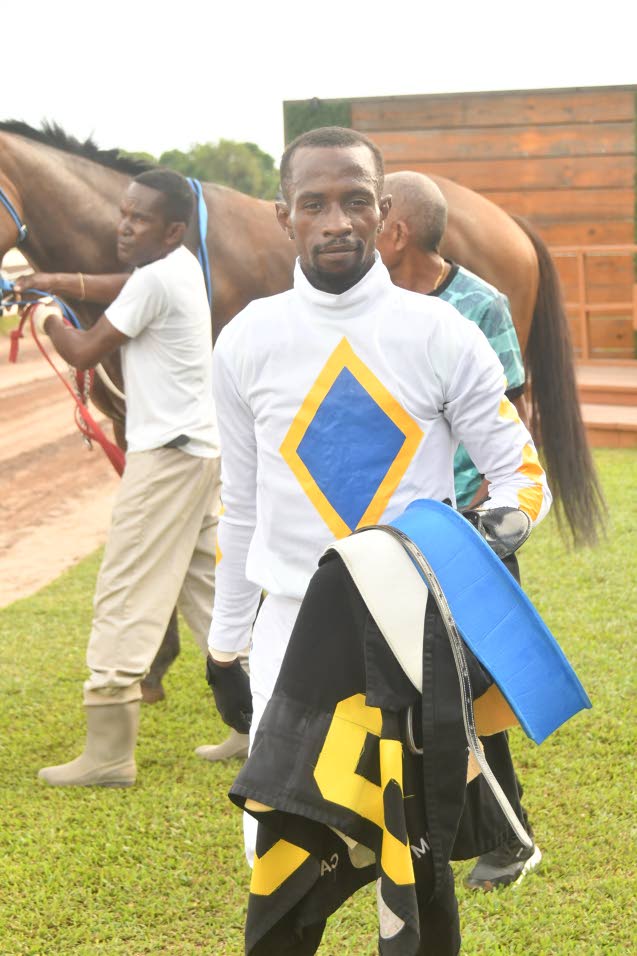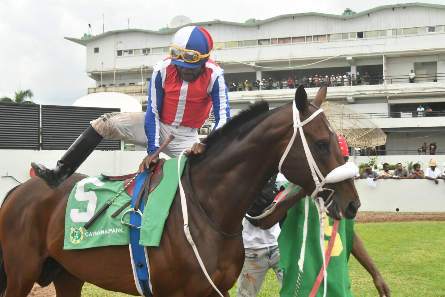 Christopher Mamdeen guides Blind Vengence to the winners’ enclosure after winning the third race. Garfield Robinson