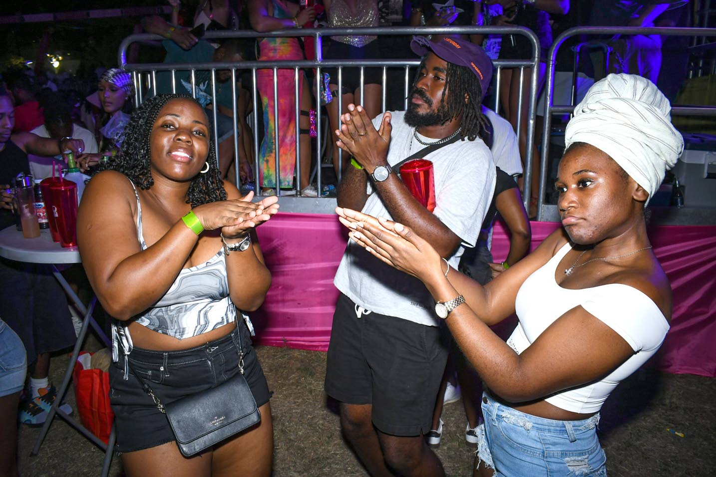 Arms outstretched, partygoers allowed themselves to be swept away by the sweet sounds of soca, some pulling their partners closer to “buss a whine”.