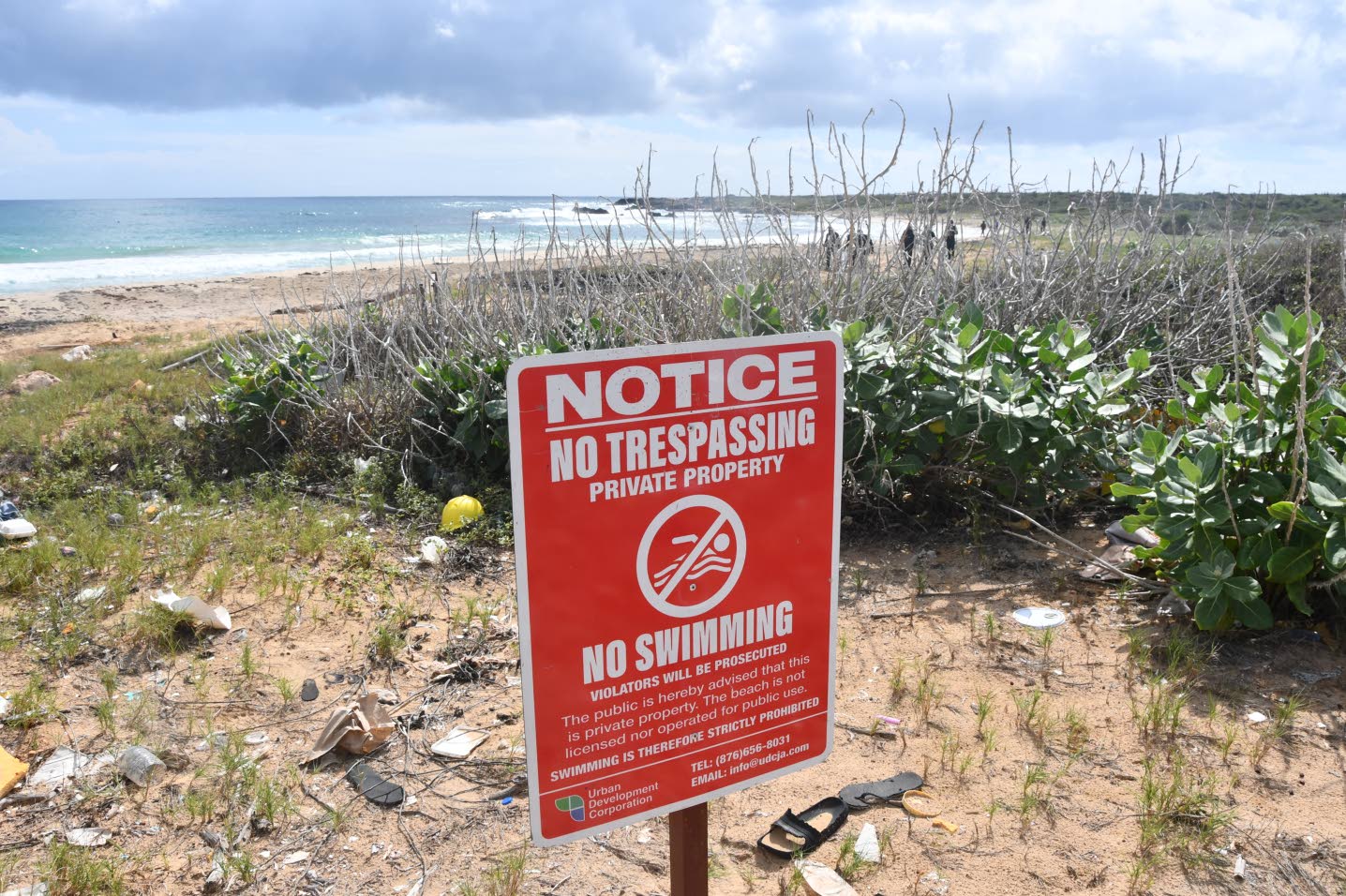 When the Jamaica Observer visited the beach on Friday, police and soldiers were seen patrolling the area at which a sign is planted advising that swimming is not permitted as the beach is private property and is “not licensed nor operated for public use”.