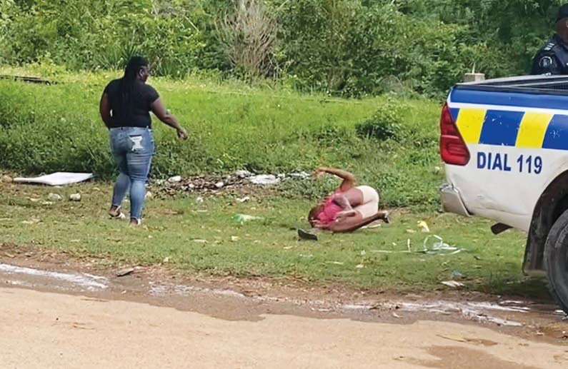 PORUS, Manchester — There were dramatic scenes in St Toolies district near here Monday when relatives of one of three men killed by the police stormed out of a car protesting what the cops said was a shoot-out and double gun seizure.