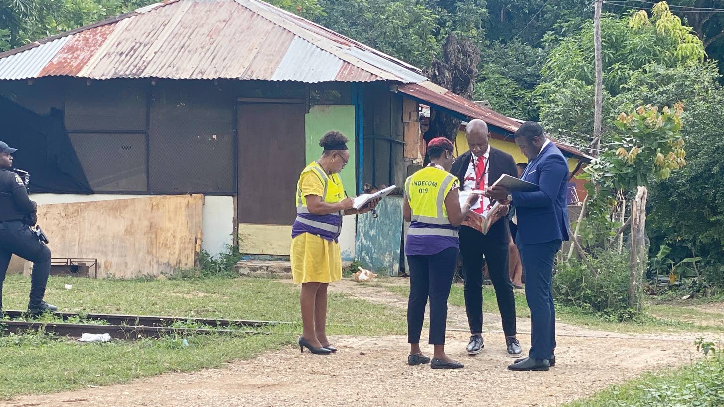 Investigators from the Jamaica Constabulary Force and the Independent Commission of Investigations near the scene of the triple fatal shooting in St Toolies on Monday.