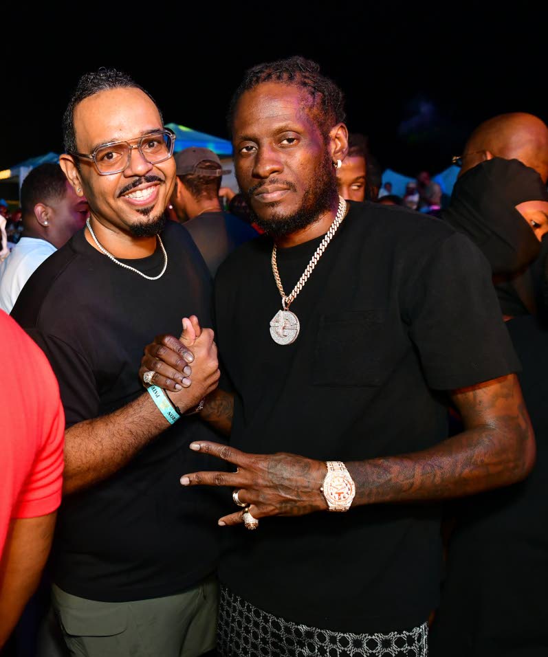 Clean and Trendy… Wright Image Ltd Managing Director PJ Wright (left) and dancehall artiste Aidonia were spotted at the event. Aceion Cunningham