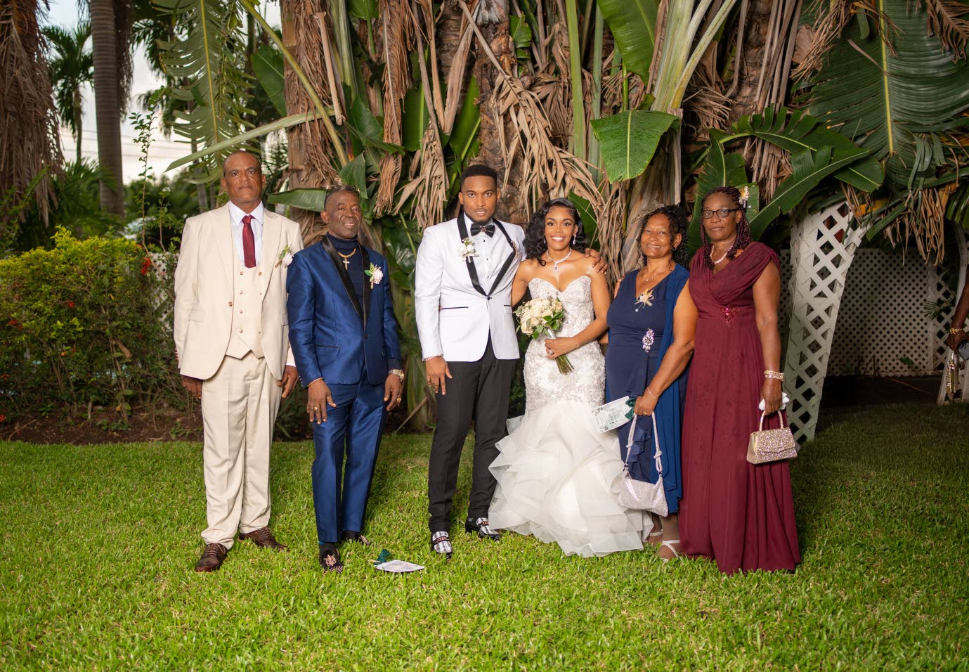 Congratulating Dane (third left) and Janel (third right) are Janel’s dad Martin (left), mum Hannah (right), Dane’s dad Ian Sr and mum Joan. (Photo: Jason Whyte)