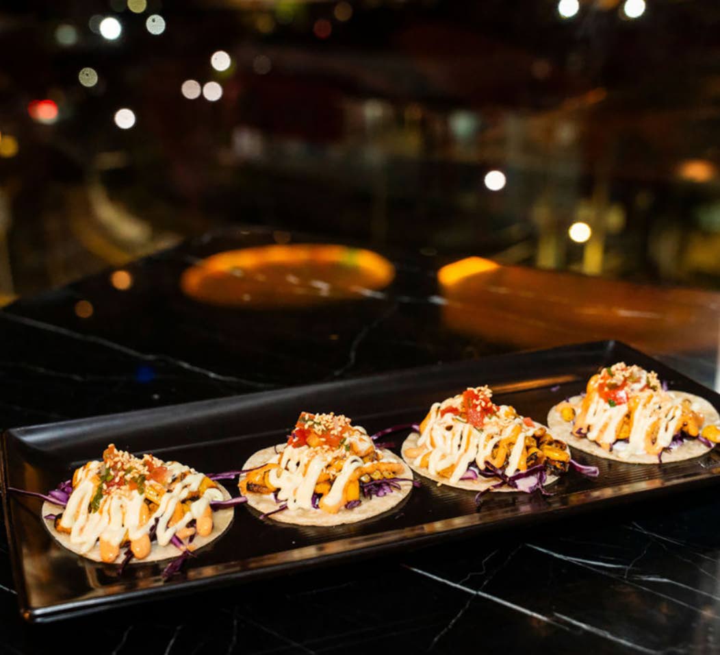 I kicked off the evening with a perfectly balanced Amaretto Sour while my anticipation built. Then came the starters: Succulent red curry shrimp dumplings that practically melted in my mouth, the Wild One flatbread loaded with layers of flavour, and charred corn tacos that had me reaching for more. Each dish was a revelation, building momentum for what was still to come.