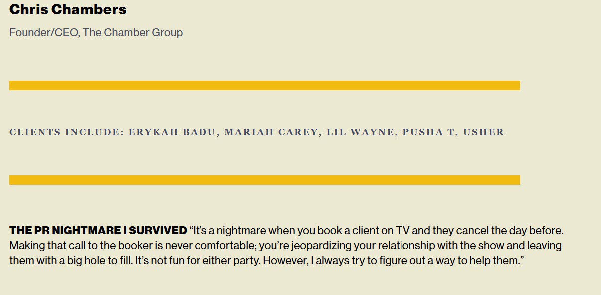 In 2023, Billboard magazine named Chris Chambers to its inaugural ‘Power Publicists’ roster, a selection highlighting the music industry’s most influential artiste representatives.
