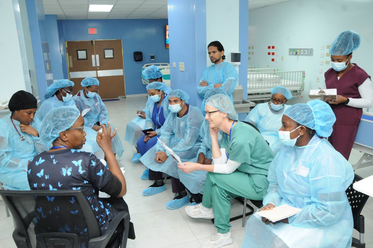 Kenyan-based Consultant Intensivist Dr Kabui Kasuongo (foreground), instructs a team of nurses from the Bustamante Hospital for Children Cardiac Centre on paediatric post-operative care best practices and skills. The training session, initiated by Chain of Hope Jamaica and Chain of Hope UK, occurred in tandem with six successful cardiac surgeries on children with extremely complex congenital heart defects by a 16-member volunteer team from the United Kingdom, from Monday, January 12 to Friday, January 16, 2026.