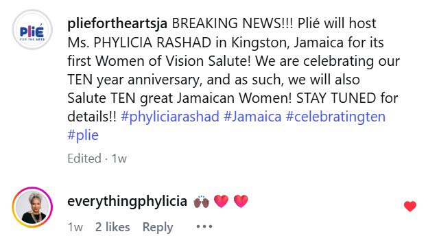 MLB: I am excited to host the 2026 Women Of Vision “Salon”, headlined by Phylicia Rashad. It is the first of what will be another annual event under the Plié umbrella. The intent is to stage the Women of Vision Salon annually, with an iconic, visionary woman as the leading voice, and also, to celebrate Jamaican women of vision. We also want to use this opportunity to host students who are on their own career paths so that can be a part of this visionary Salon and join the conversation with these great women.