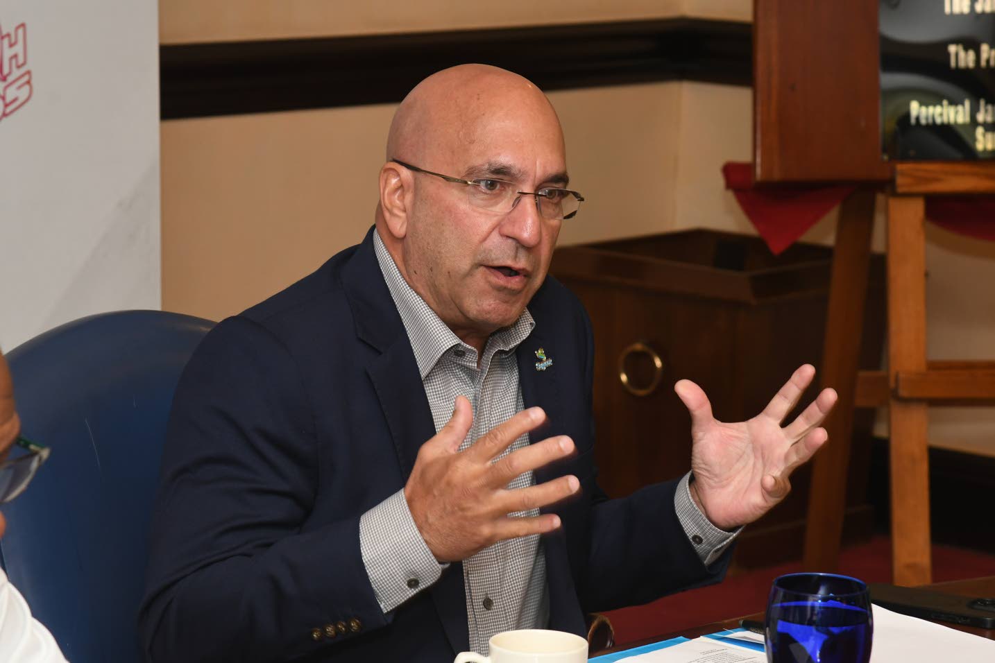 Sagicor Group Jamaica President and CEO Christopher Zacca, who is also chairman of Sagicor Foundation, drives home a point during this week’s Jamaica Observer Monday Exchange during which details of the 2026 Sagicor Sigma Corporate Run, slated for Sunday, February 15 were unveiled. (Photo: Karl Mclarty)