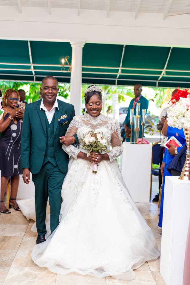 Yanique is escorted up the aisle by her father Conrad Bailey to Nathaniel Bassey’s See What The Lord Has Done. (Photo: Russ Media Photography)