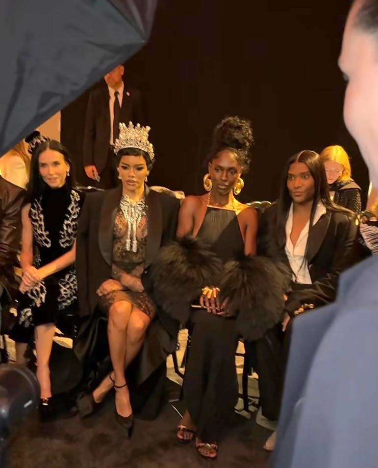 Later, Turner Smith (second right) was spotted sitting front-row at the Schiaparelli Couture SS26 show with (from left) actresses Demi Moore, Teyana Taylor, and stylist Law Roach..