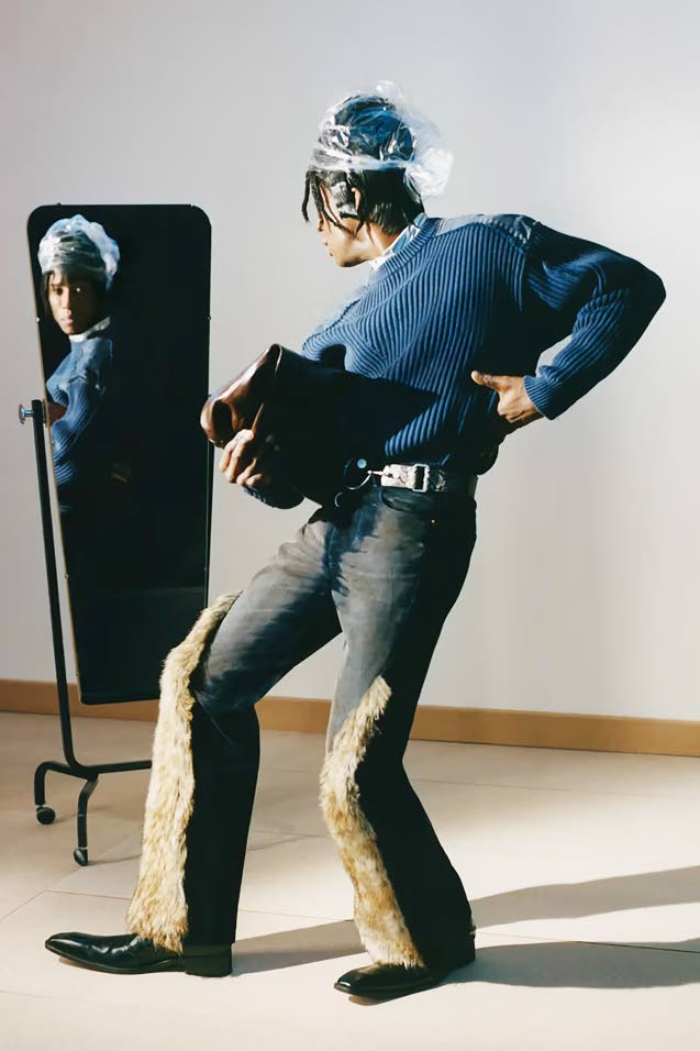 Easy Does It Ease and comfort were issued in tonal cotton and merino knits made in collaboration with heritage English makers John Smedley, while an indigo linen tuxedo from Savile Row tailors Anderson and Sheppard lightens the formal wardrobe for the Wales Bonner Autumn Winter 2026 collection. Malick Bodian
