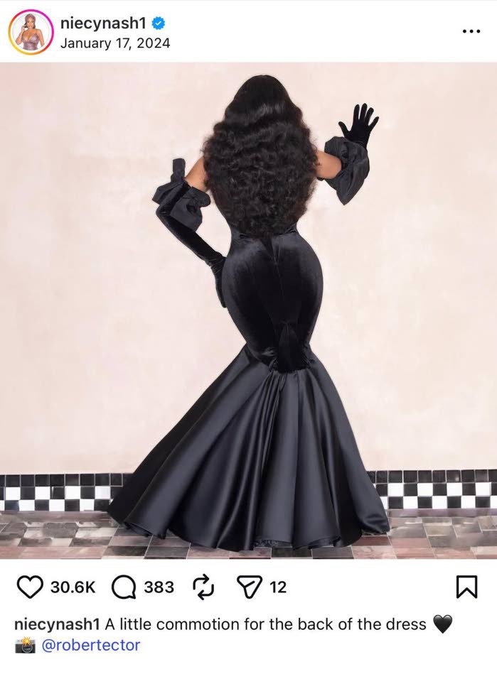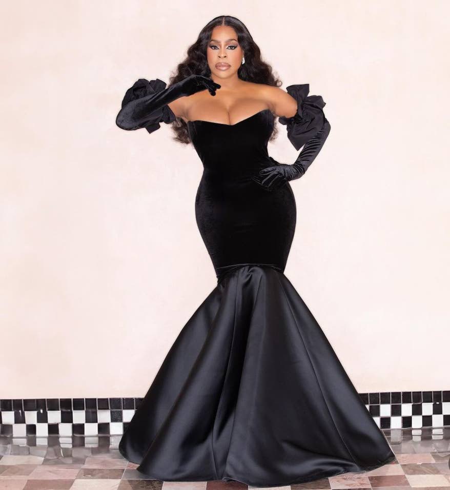 Actress Niecy Nash-Betts wore a stunning custom black velvet and satin gown by Greta Constantine to the 75th Primetime Emmy Awards (held in January 2024), at which she won her first Emmy for her role in Dahmer. Robert Ector via (Photo: IG/@niecynash1)