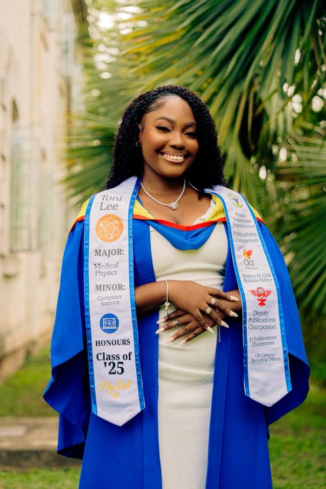 “I work hard sewing late nights and selling, and same with my husband. He worked hard to fix transmission in different parishes. We successfully paid her tuition at UWI without loan,” said Toni’s mother, Lorraine Lee.