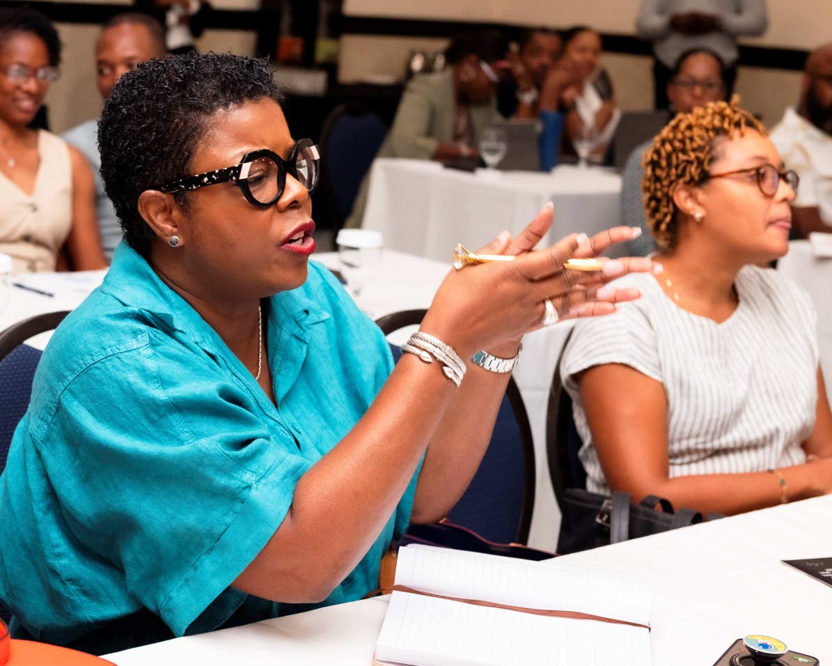 Georgia Morrison (left), AVP – Sales, CUNA Caribbean Insurance, makes a point during the recent Build Wealth workshop held at the Jamaica Pegasus hotel. .