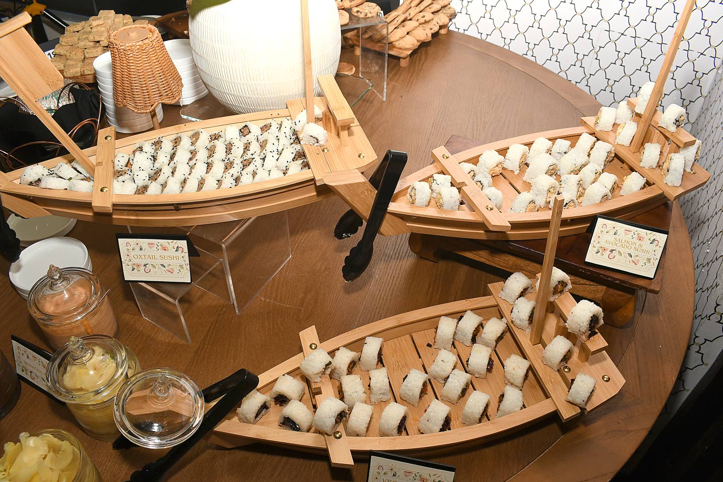 The sushi station consisting of oxtail, salmon and avocado, and vegetable rolls.(Photo: Karl Mclarty)