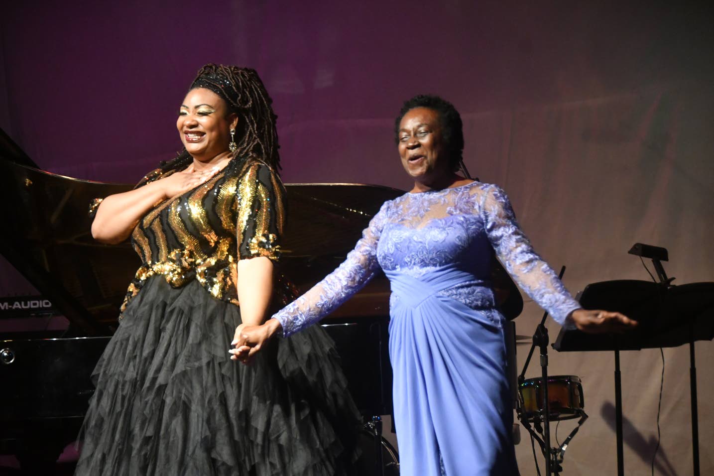 Raehann Bryce-Davis (left) and mom Hortensia Bryce close the first half of the show. (Photo: Garfield Robinson)
