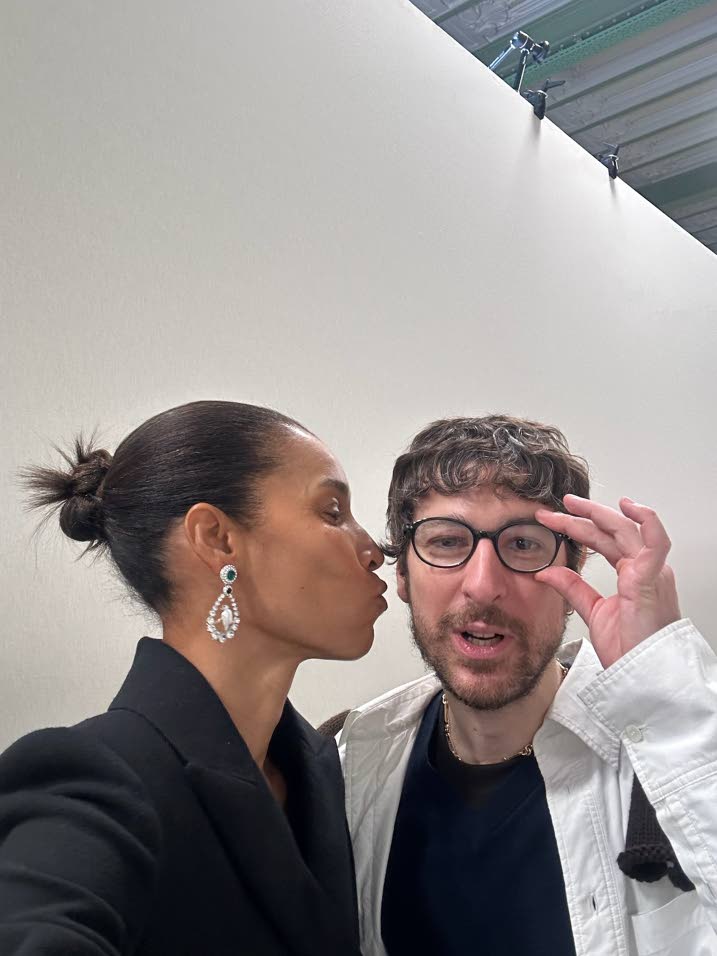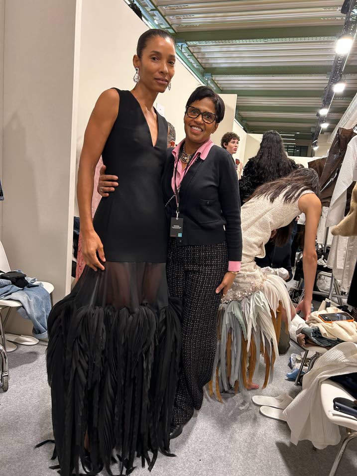 Gordon plants a kiss on research designer at Chanel Pierre Olivier Agostini, who dressed her for the collection.(Photo courtesy of Romae Gordon)