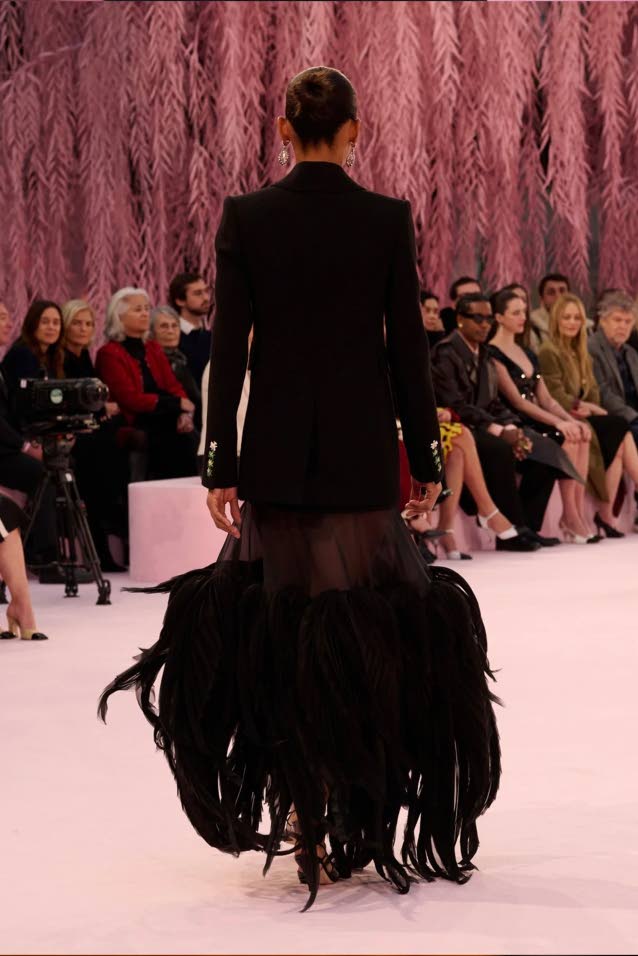 The journey of the look in any collection is long and, in this case, for Blazy’s Couture debut at Chanel, every detail matters! What appears to be a simple and classic outfit with the season’s inspiration is so much more. The prep starts months in advance of the show and a look’s metamorphosis becomes a natural part of its journey and process. In fact, for my first fitting, I wore a skirt of a similar silhouette to the dress which had a hint of canary at the hem. But in an act of intuitive volition and creative genius, Blazy set that aside and the reimagined and re-crafted Look 31 rises like a phoenix, impeccably finished after hours of intense labour by some of Chanel’s finest white-caped craftswomen, to be what I presented in Paris on Tuesday, Janurary 27.