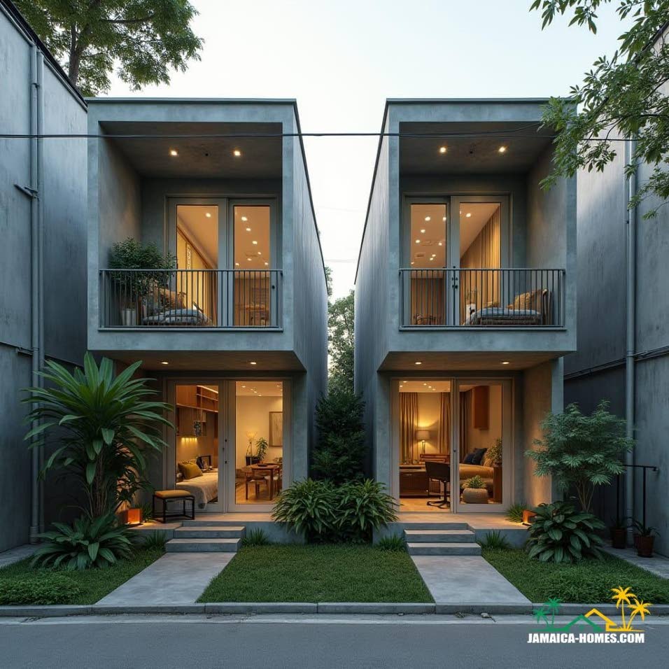A compact townhouse form using reinforced concrete, stacked massing, and shared walls to maximise durability, efficiency, and climate-responsive urban living in Jamaica. (Photo: jamaica-homes.com)