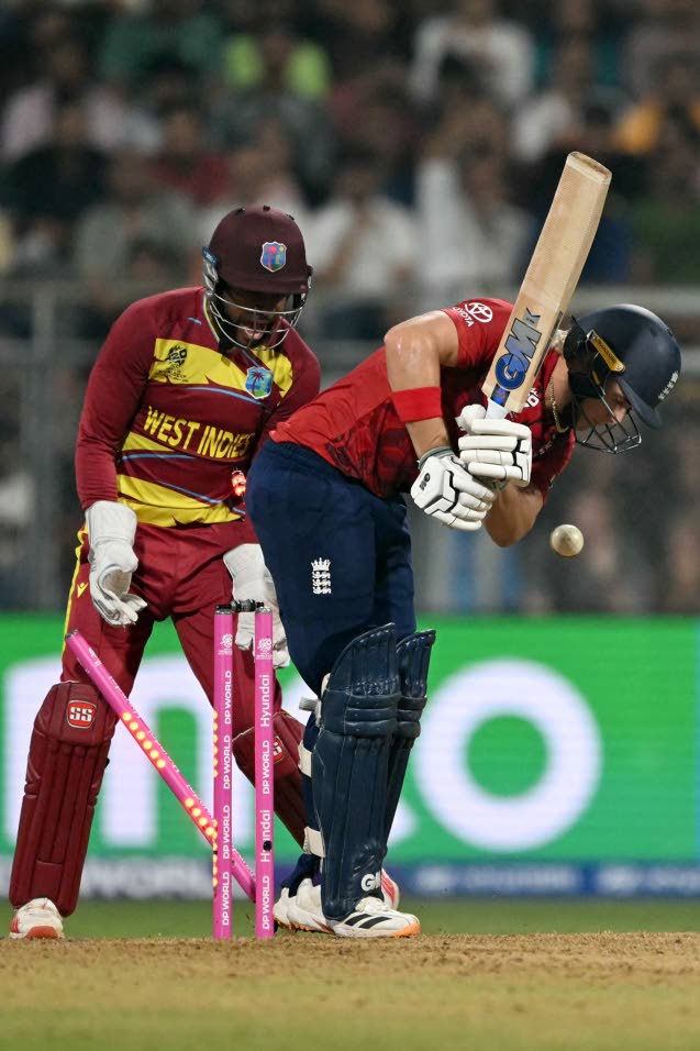 MUMBAI, India — Left-arm spinner Gudakesh Motie tore the heart out of England’s much-vaunted middle order Wednesday as the West Indies won by 30 runs in their T20 World Cup clash in Mumbai.