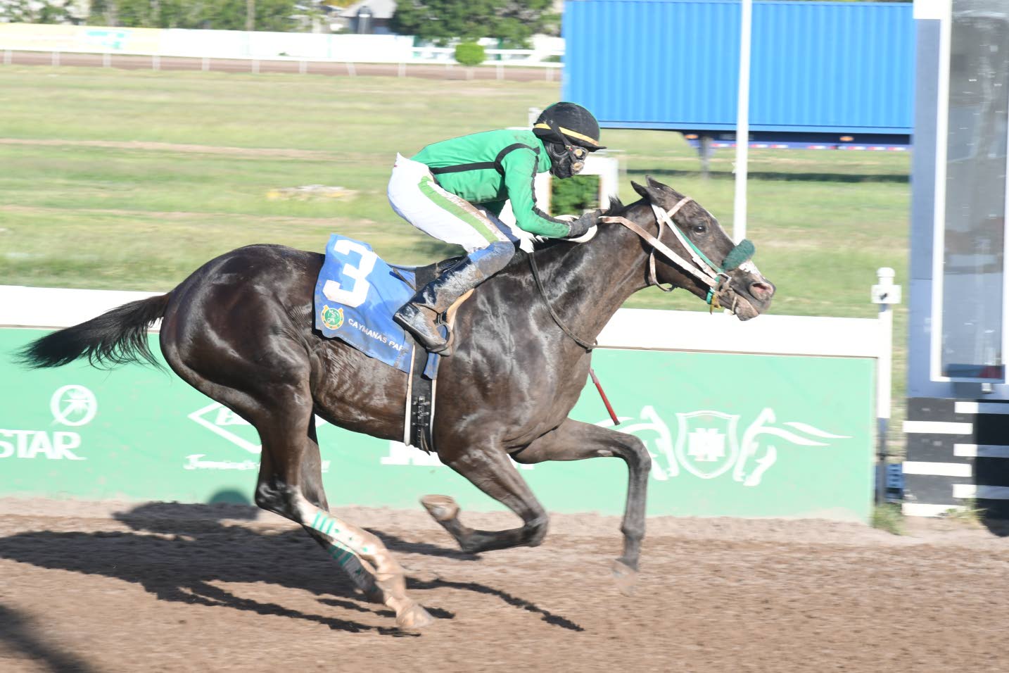 Ridden by two-time champion Raddesh Roman, Barnaby (USA), who suffered a setback in his previous appearance last August, was backed at odds of 2-5 and justified this backing, but not in the style that may have been anticipated. Well off the pace for the first six furlongs, the five-year-old bay horse, conditioned by Anthony Nunes, only arrived in the final stages to overtake front-running stablemate