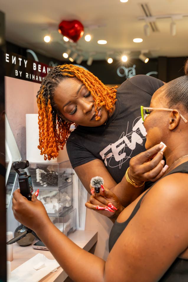 Beauty team lead Peta-Gaye Phillips shade-matched Fenty Beauty Foundation on a customer. Jermaine Duncan