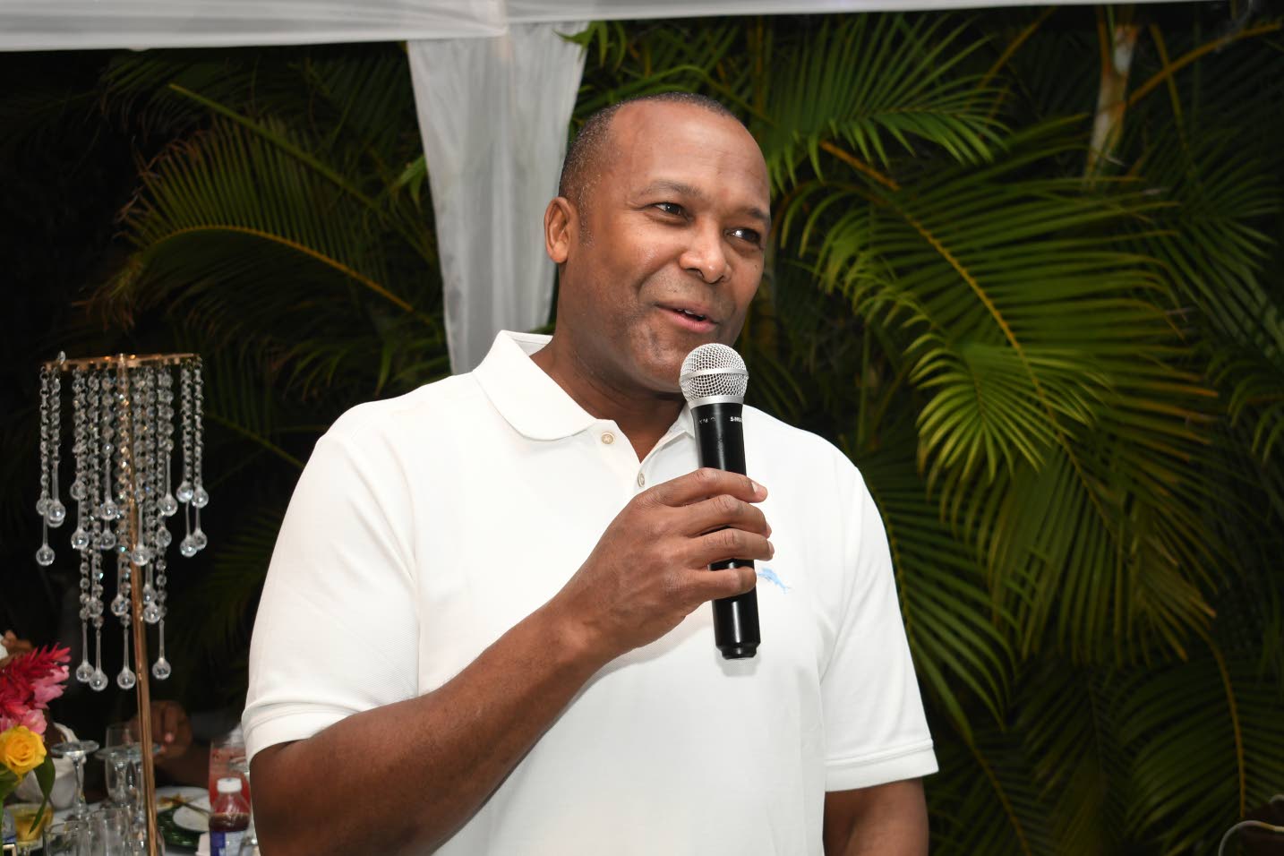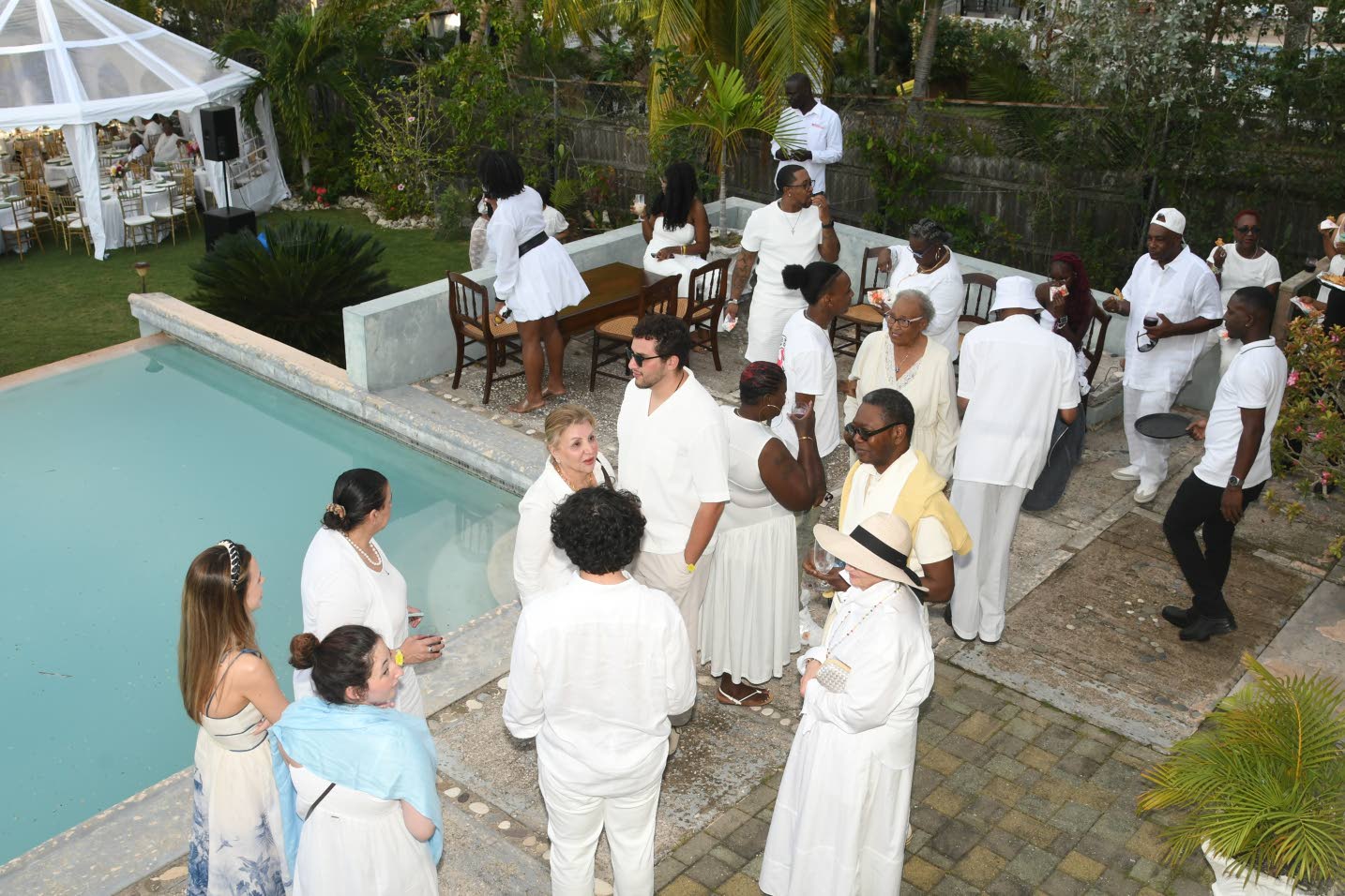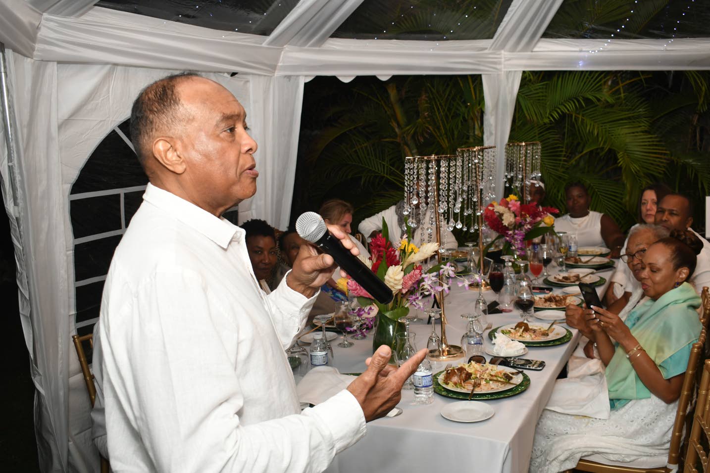 The party moved to the pool deck, then lower lawn area, where family and friends doted on Ingleton while excitedly putting faces to names, and catching up with those they had been longing to see. Guests feasted on a decidedly Jamaican menu as Ronald took to the microphone as master of ceremonies.