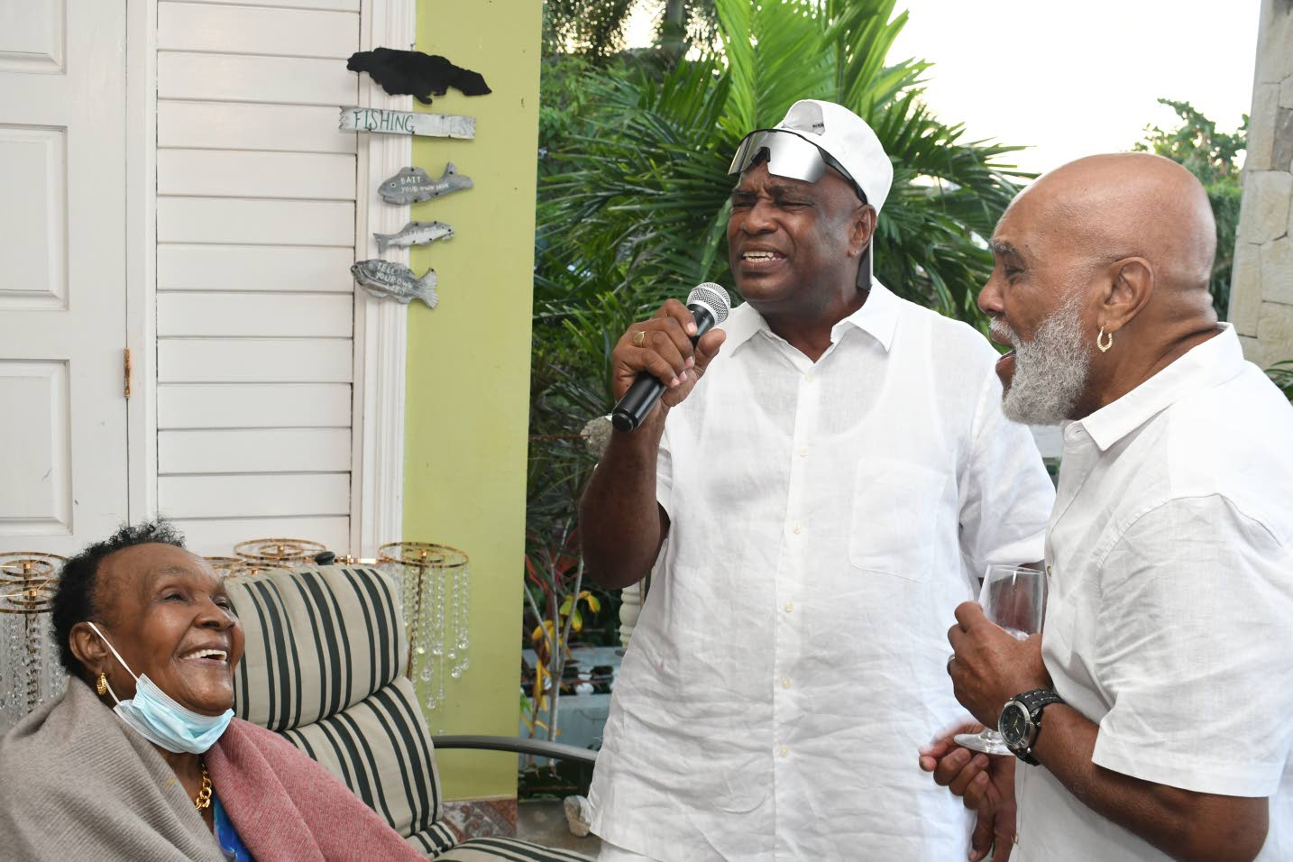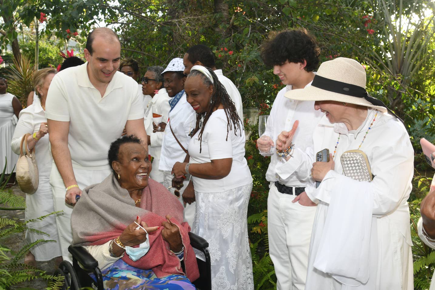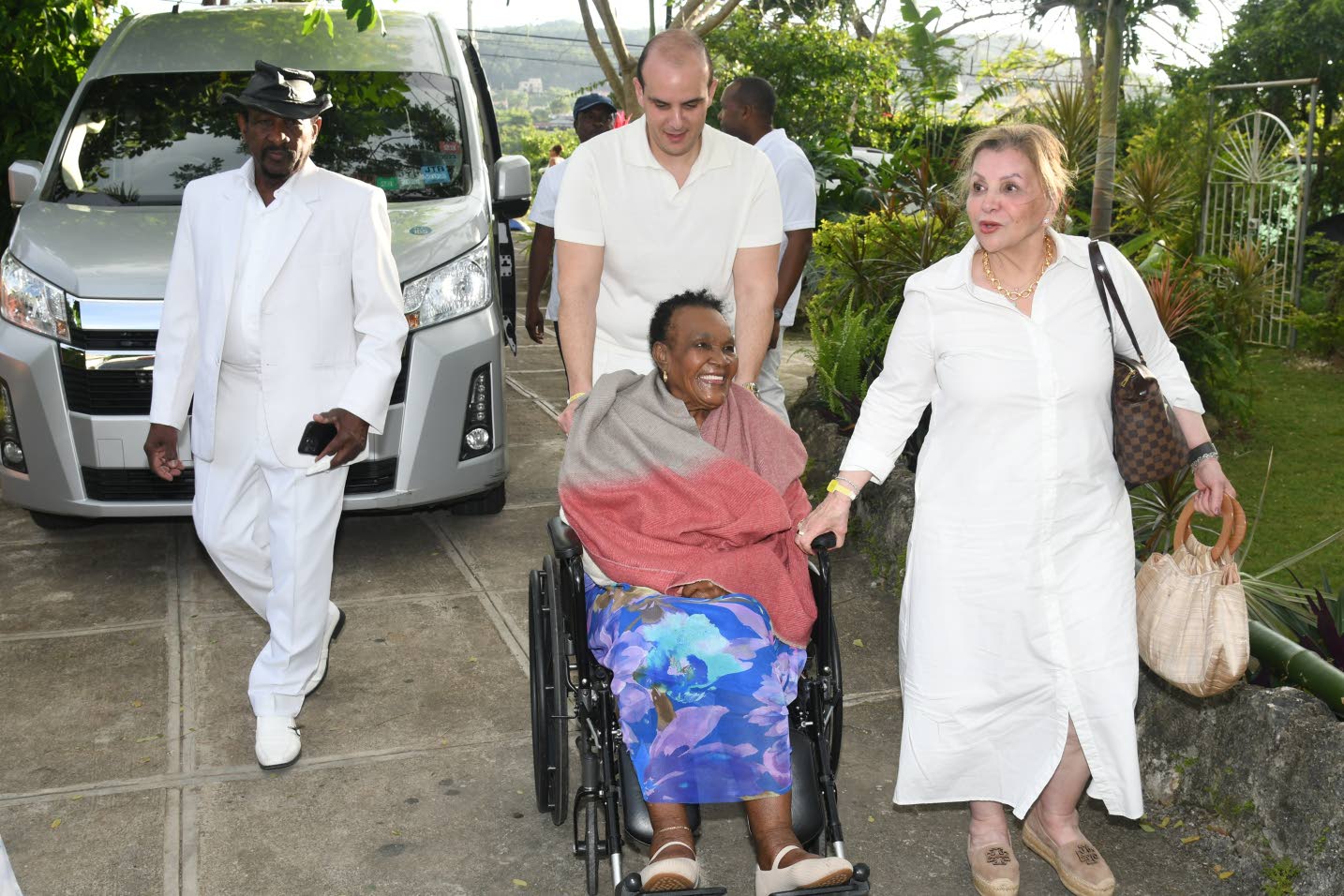Approximately 100 of Elaine Ingleton’s family and friends formed a guard of honour outside the Dr Andre Minott-designed, Boscobel, St Mary property ‘Jazz Bass’, and in unison, sang Ingleton’s favourite Louise “Miss Lou” Bennett song to welcome the soon-to-be centenarian for an all-white affair as dignified as her legacy.