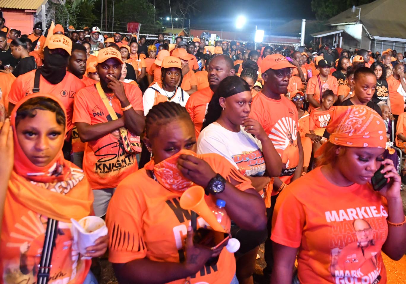 Dejected People’s National Party (PNP) supporters listen as party President Mark Golding concedes defeat in the September 3, 2025 General Election at PNP headquarters in St Andrew.Photo: Naphtali Junior
