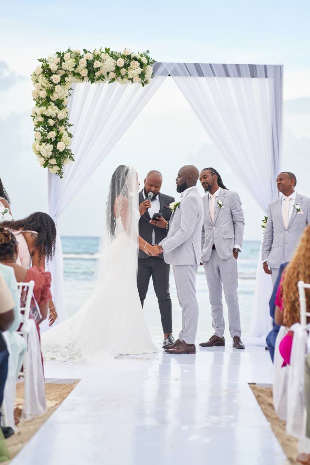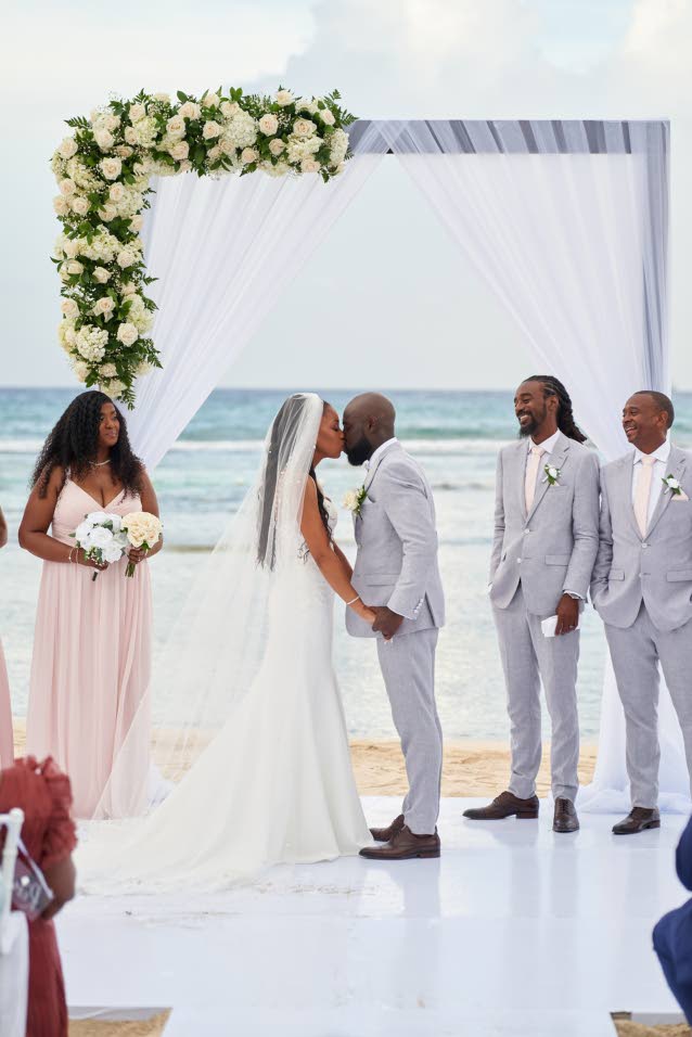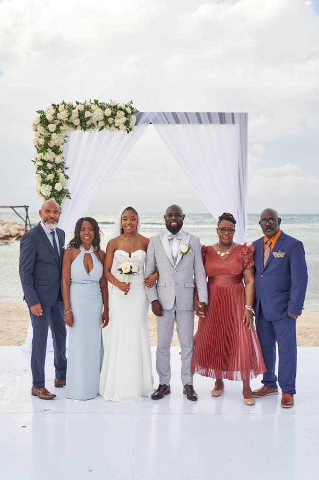 Two years later, their dream wedding became a reality at Ocean Coral Springs Resort in Trelawny. Daniella stunned in a mermaid-style gown as she walked up the aisle on her father Donald Hall’s arm. To the strains of Eric Benét and Tamia’s Spend My Life With You, she made her way to a waiting Shevaughne.