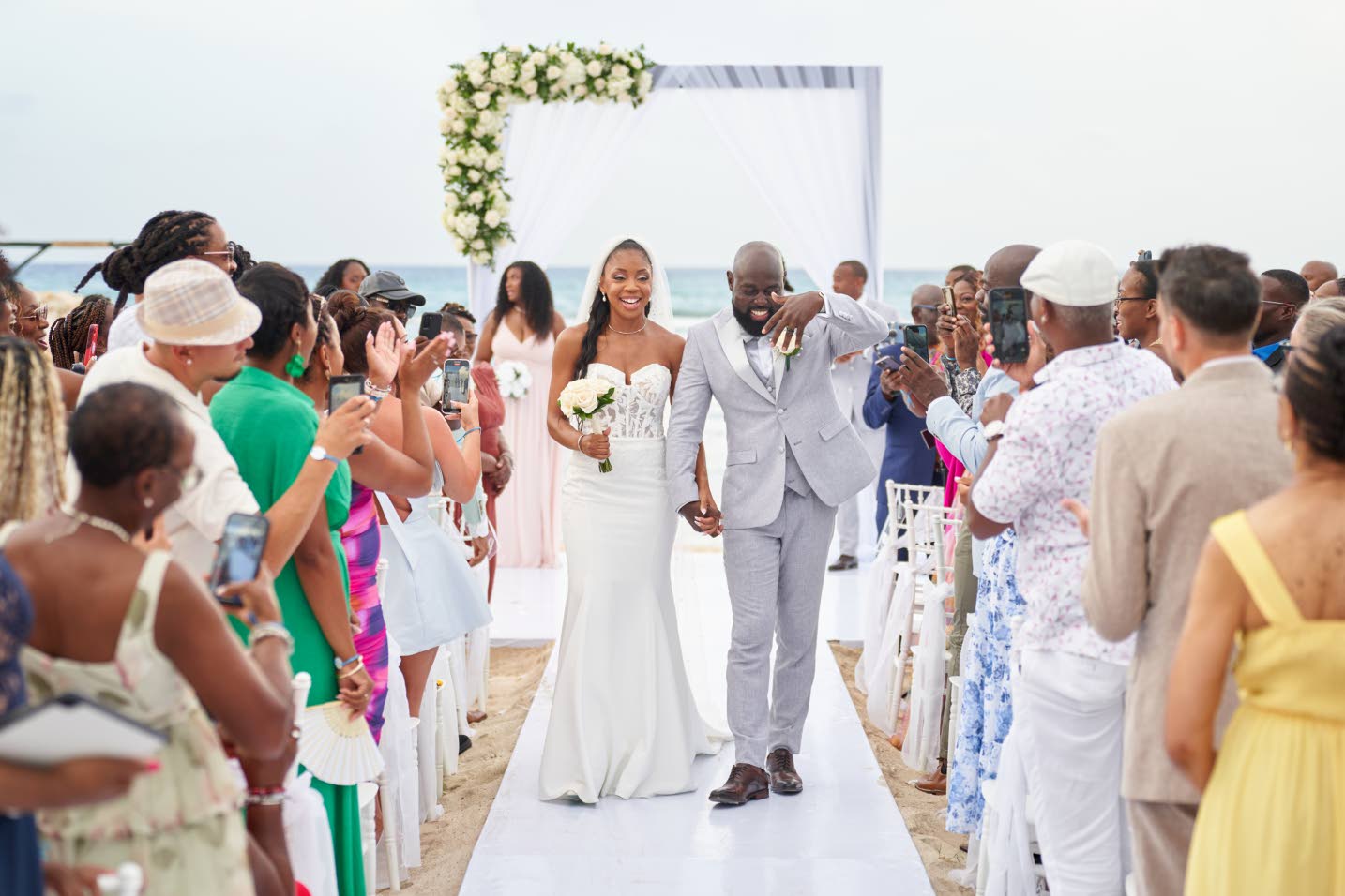 The newly-weds make their way down the aisle for the first time as Mr and Mrs Shevaughne Wynter.(Photo: Garry Porter)