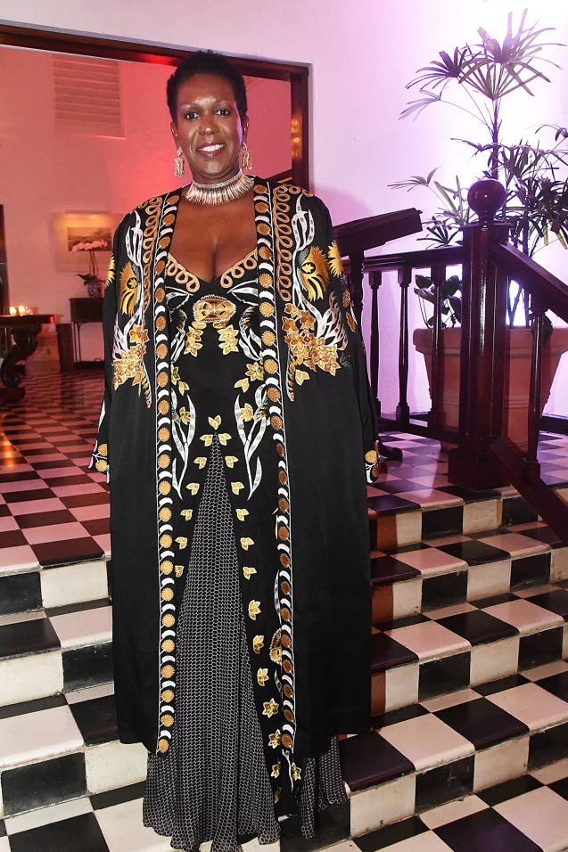 Shimmery Bronze Attorney-at-law Dr Doris Voll dazzled in a kaftan from Taller Marmo. Garfield Robinson