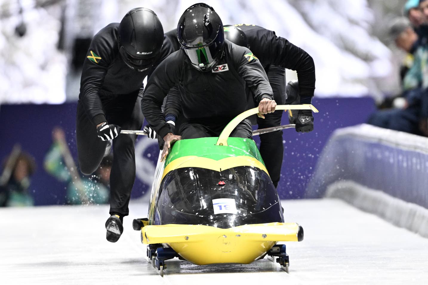 The team of Shane Pitter, Junior Harris, Tyquendo Tracey, and Joel Fearon posted a combined time of 1:50.57, 1.96 seconds behind leaders Germany. Jamaica were 23rd after the first run in 55.28 seconds, then improved to 19th in the second heat with 55.29.