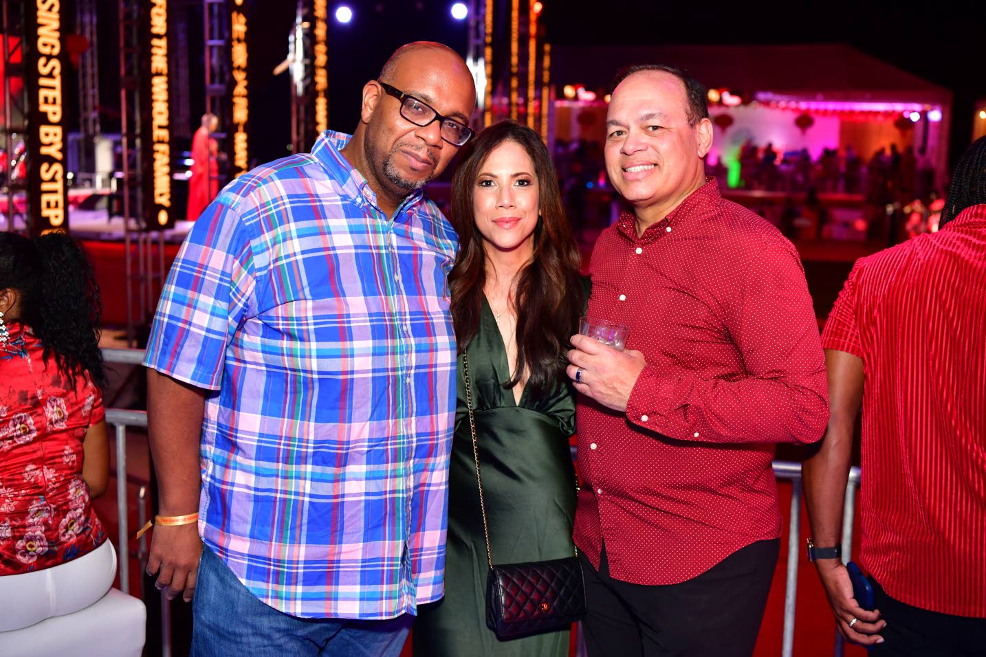 Warm Welcome LCH Developments CEO Yangsen Li (left) greeted CEO & Managing Director of Seprod Group Richard Pandohie and his Jamaica Food + Drink Festival co-director wife Nicole on arrival.Aceion Cunningham