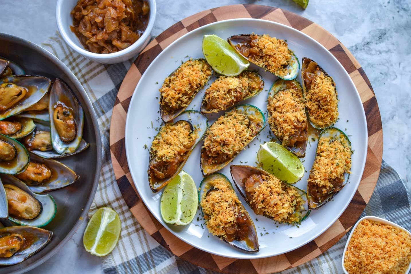 CARAMELISED ONION-STUFFED MUSSELS
