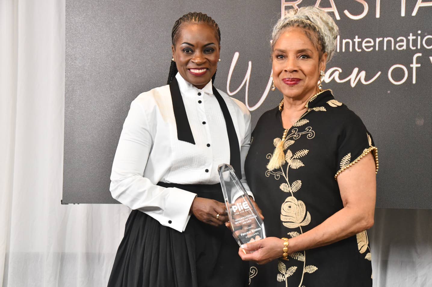 “First of all, let me just say how pleased I am to be here. I’d like to recognise my family, my daughter “PK” for her support, since my husband would not wear a bow tie tonight [laughs]… And of course my team from Scotia Group, who have been such great supporters for different events, but most of all for the work that they do, and who they are as professionals. This evening is very special. It is always good to be recognised in your country, with your peers. I am very honoured to be among women from almost every industry, and it’s a real star-studded group of women. So I want to thank Plié For The Arts, and Marisa in particular, for this event. This event that came from a seed planted, and it is growing from strength to strength. Admittedly, I was one of the persons that said no at first. So I just outed myself! But Marisa is persistent, and she has a dream for the arts that Jamaica needs. [Applause] I want to congratulate you for being a dreamchaser and not just a dreamer. And then of course to the lovely Ms Phylicia Rashad… I said to someone from my office today that watching you, you were the first example of a woman of colour achieving being a mother, being an advocate, being a full professional, with a full family, and doing it with grace… I would have watched you on television with such admiration and I never thought it would have been possible to meet you in person, and I am truly honoured. So thank you for all that you’ve done for persons who may never ever meet you, but for showing what is possible in what you do for the way of service. Thank you, everyone, and thank you to the Lord for every blessing.” — Audrey Tugwell HenryKareem Carr/LH Multimedia