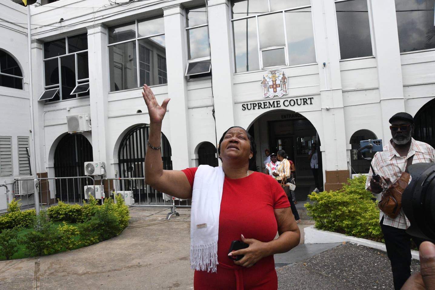 Sophia Lugg giving thanks outside the Supreme Court in downtown Kingston on Friday after Noel Maitland, the man found guility of murder in relation to the July 12, 2022 disappearance of her daughter Donna-Lee Donaldson, was sentenced to 32 years in prison. (Photo: Joseph Wellington)
