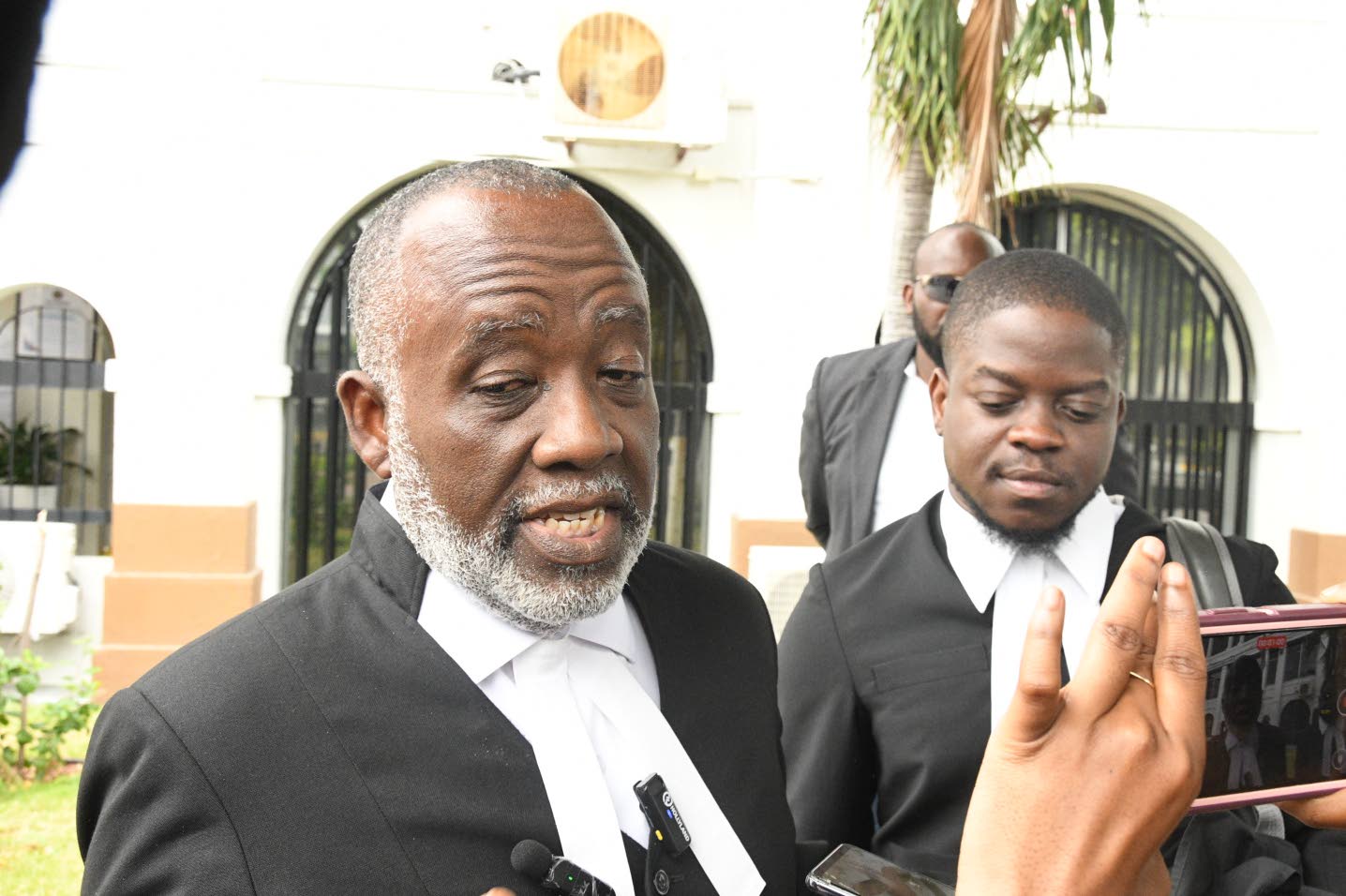 Defence attorney Christopher Townsend speaks with journalists outside the Supreme Court in downtown Kingston on Friday after his client, Noel Maitland, was sent to prison for life for the murder of his girlfriend Donna-Lee Donaldson. Attorney Chadwick Berry, who is a member of Maitland’s defence team, looks on. (Photo: Joseph Wellington)