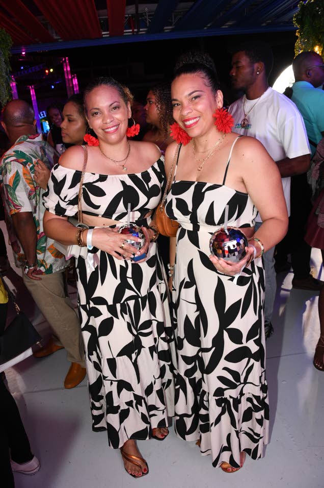 Double The Fun Sisters pastry chef Chrystal Wong (left) and JN Bank Financial Advisor Sacha Wong arrived at the CIBC booth in leaf print maxis.Joseph Wellington