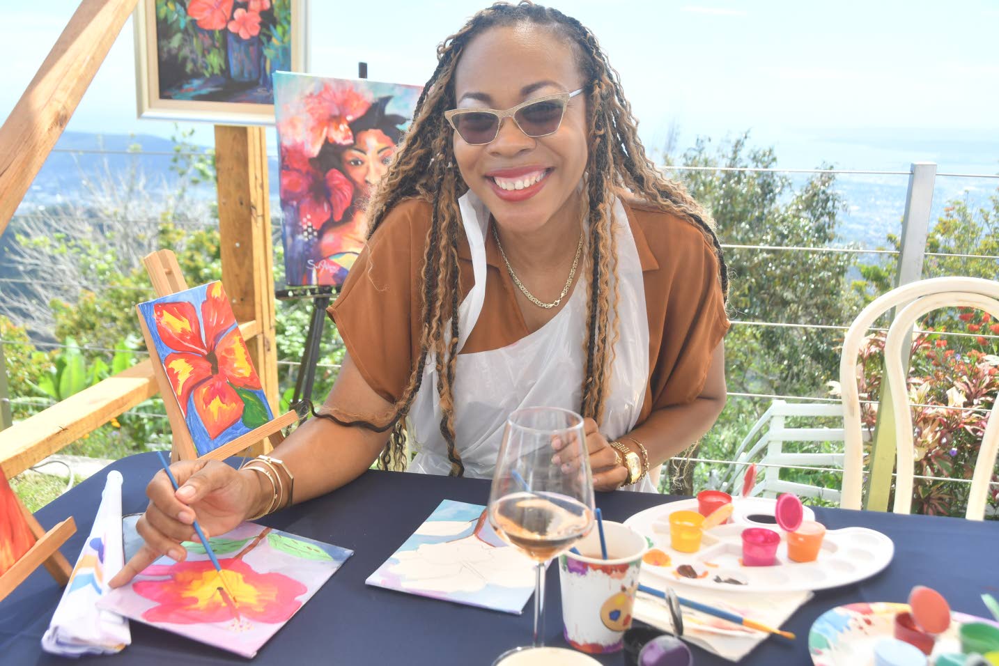 Visa Senior Marketing Manager Kenesha Thomas took a photo break before completing her work of art at the sip and paint station. Garfield Robinson