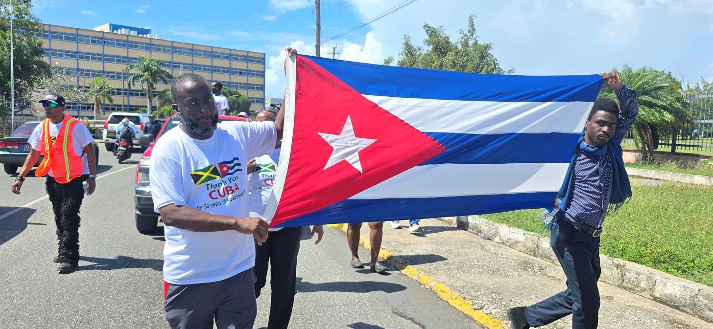 Jamaicans express their appreciation to the Cuban doctors and nurses by engaging in a gratitude walk on Tuesday from downtown Kingston to Heroes’ Circle. (Photo: Llewellyn Wynter)