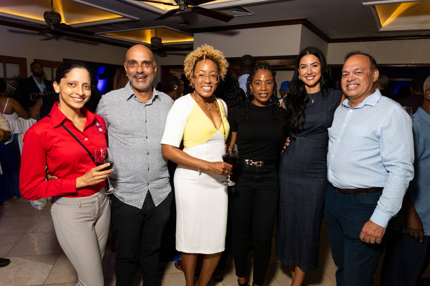 Enjoying the evening were (from left) Pier 1 Food and Beverage director Anna Kaye Russell-Byles; Chukka Tours Managing Director John Byles; Royalton White Sands Groups and Meetings Manager Stayce Ingram; Caribbean Solar Life and Construction Regional Director of Sales and Marketing Chevaughne Miller; Barita Investments Vice-President, Strategic Business Development & Investor Relations Kerrie Baylis; and Margaritaville Caribbean Group Chairman Ian Dear.(Photo: Coden Moyston)