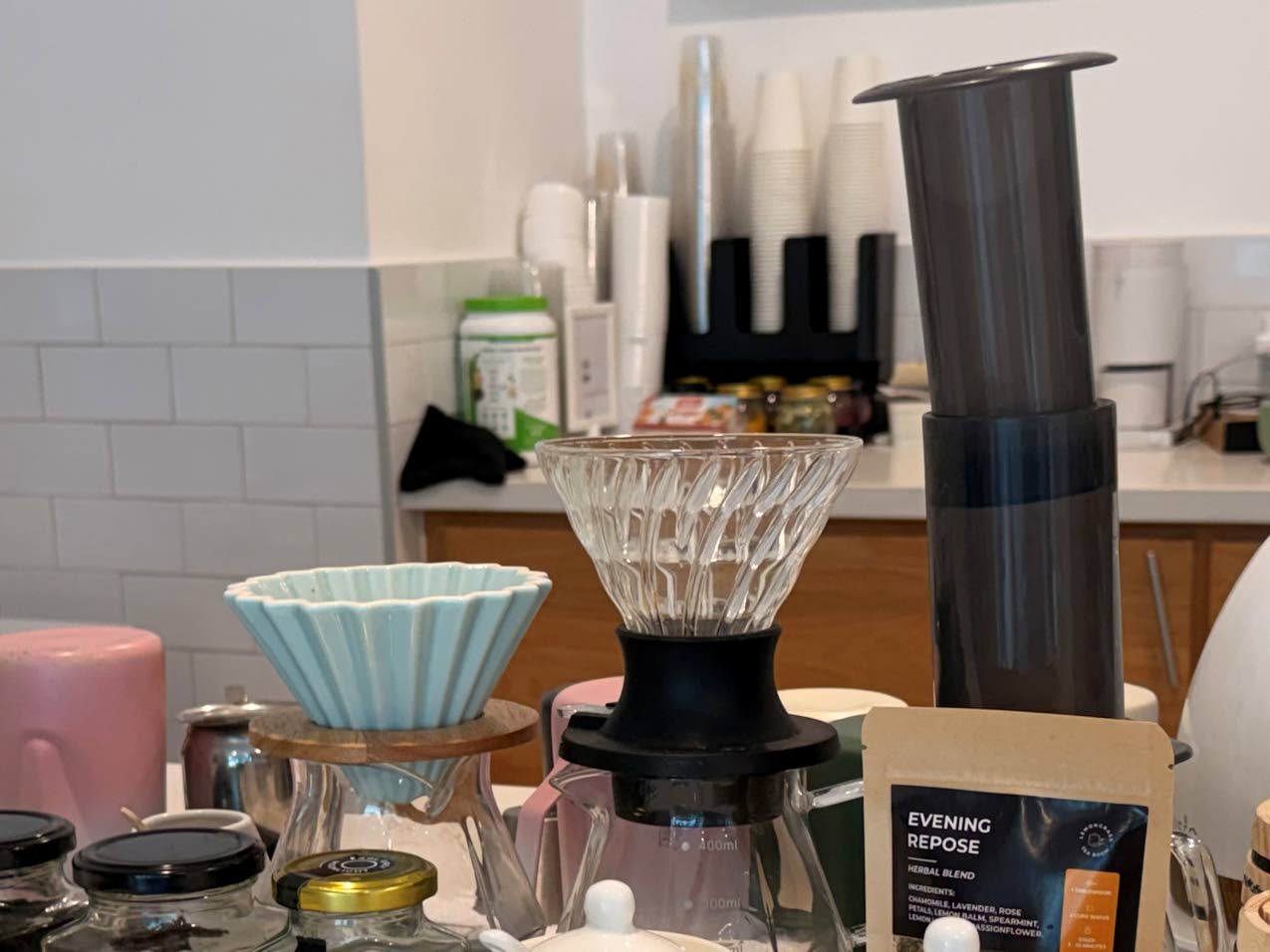 Rio by Léo Moço’s pour-over systems (from left) the Origami V60 and the Aeropress (Photo: Christopher Reckord)